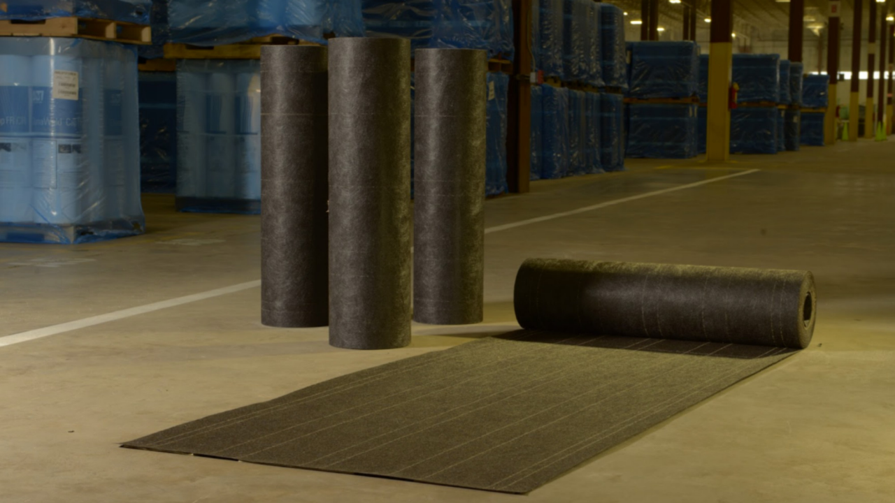 Fully-Coated Mat: No pinholes prevent asphalt bleed-through, eliminating splitting problems associated with excessive membrane attachment to nailable decks. Excellent nail retention properties and resistance to uplift forces. Virtually eliminates wrinkling, resulting in fast, efficient applications.