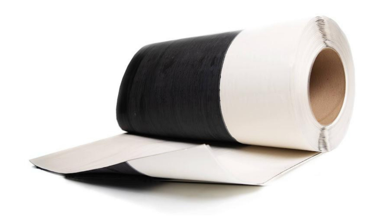 - 60 mil thick, White EPDM with a release liner and a 3" or 6" factory laminated, self-adhering EPDM tape.