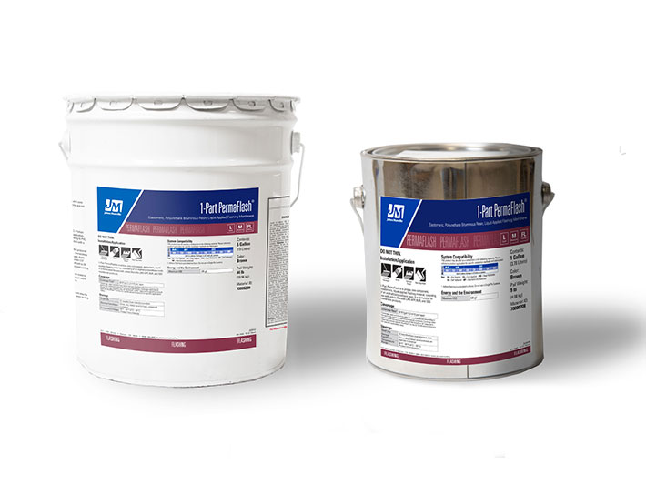 Use: 1-Part Permaflash is a unique, one-component, elastomeric, liquid applied flashing material, consisting of an asphalt/polyurethane resin. It is formulated for use with Johns Manville (JM) modbit membrane products.