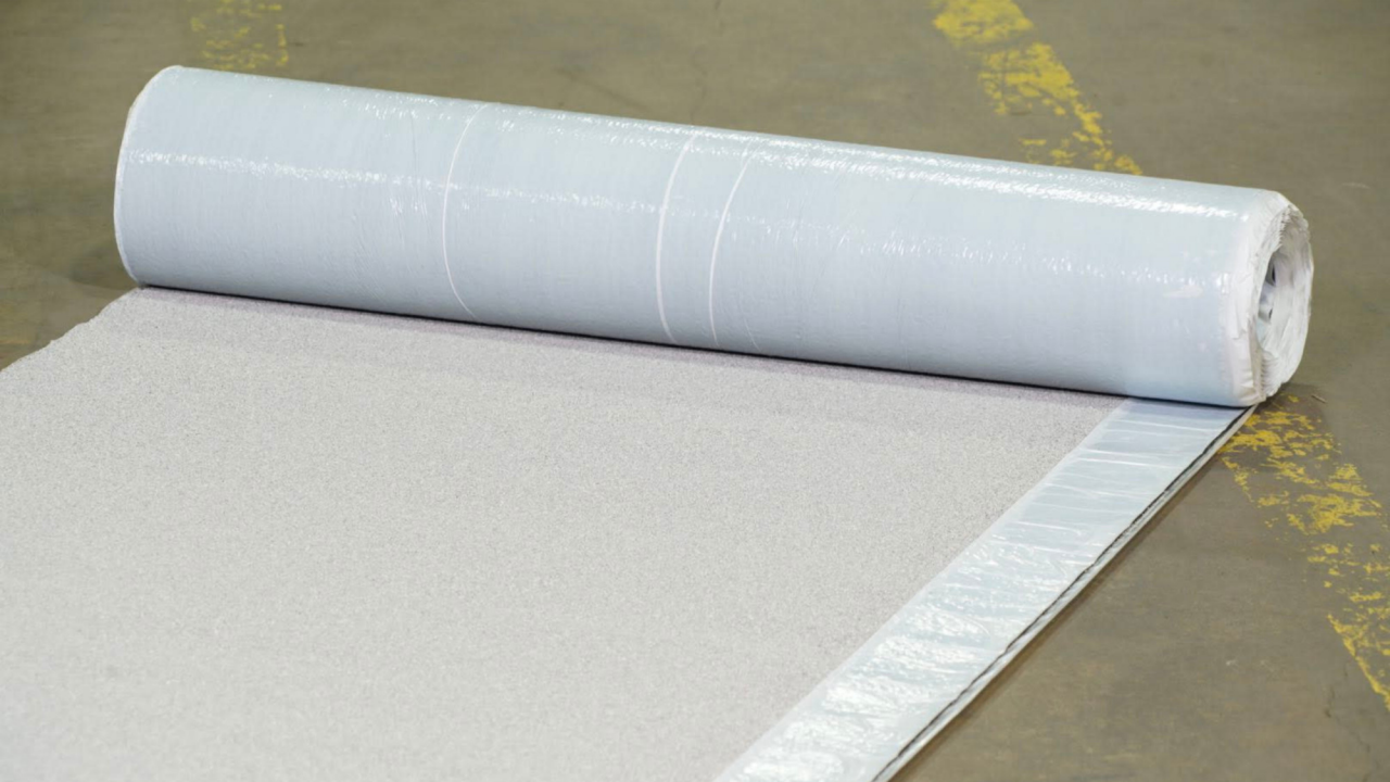 Self-Adhering Modified Bitumen: The product’s self-adhering feature with an easy-to-peel plastic film on the bottom side of the sheet allows for installation without the need of hot asphalt.
