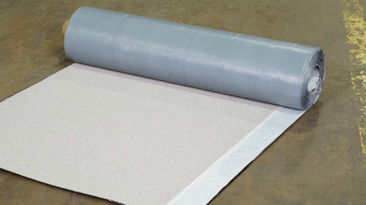 Self-Adhering Modified Bitumen: The product’s self-adhering feature with an easy-to-peel plastic film on the bottom side of the sheet allows for installation without the need of hot asphalt or heat-welding.